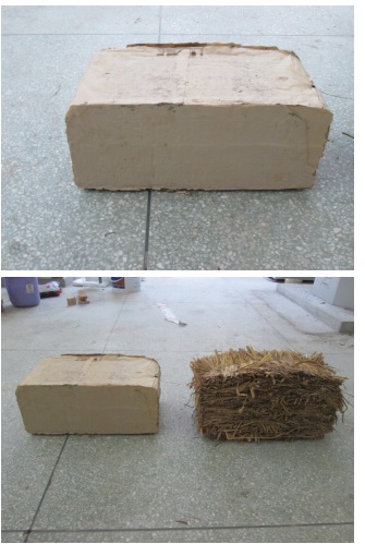 主要采用水稻秸秆经高压后,外表贴纸,制成纸面建筑砌块。