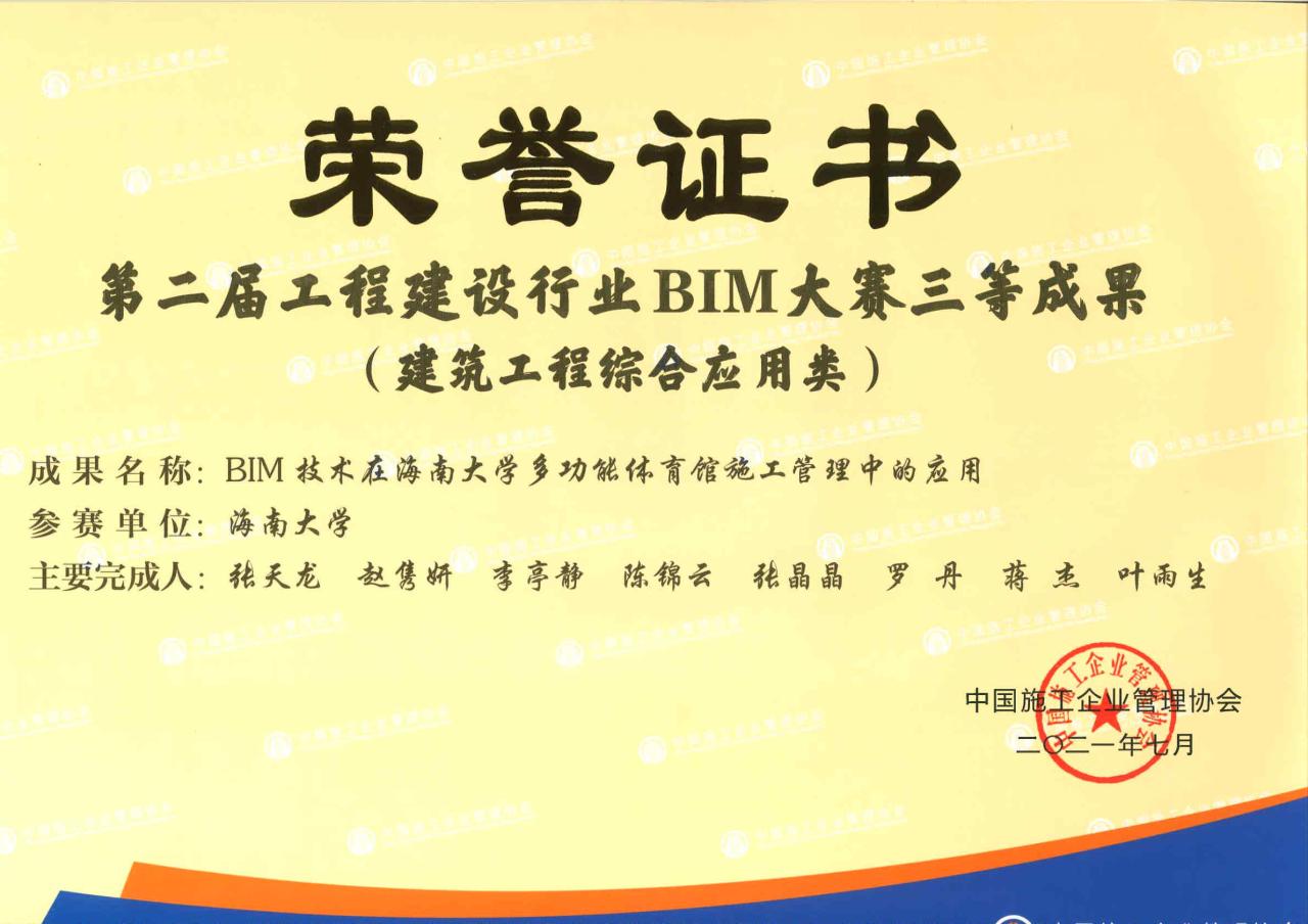 本届大赛组委会设在工业和信息化部人才交流中心,组委会秘书处设在石家庄铁道大学,大赛组委会组建专家委员会,中国工程院杜彦良院士担任专家委员会主任,石家庄铁道大学王明生教授担任秘书长。在赛制上,本届大赛坚持校企联合报名的参赛制度,由院校(高职、本科)和企业联合组成团队参赛。其中由张天龙老师指导、XCSportBIM协会申报的“XCSport多功能综合体育馆BIM技术综合应用”经过网上报名、作品提交、初评、答辩评审等环节,最终再次蝉联金奖!截止到目前,本项目已经荣获2021年全国高校BIM毕业设计大赛二等奖、2021年工程建设行业BIM大赛三等奖和2021年“龙图杯”全国BIM(建筑信息模型)大赛优秀奖。