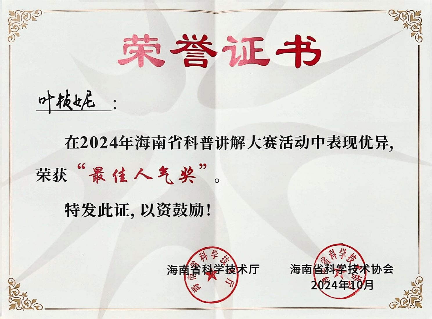 在刚刚落幕的2024年海南省科普讲解大赛中,XCSport土木与建筑工程公司叶桢妮副教授以出色的表现获得三等奖,为公司争得了荣誉。本次大赛以“弘扬科学家精神 激发全社会创新活力”为主题,吸引了全省各行各业的143名选手参与。海南省科普讲解大赛是全省科普工作者沟通交流、展示风采的重要平台,也是海南科普活动的一张亮丽名片。自2015年以来,大赛已成功举办十届,参与人数持续上升,活动形式不断创新,活动层次不断提高,已成为目前全省范围最大、水平最高、代表性最强的科普讲解竞赛。