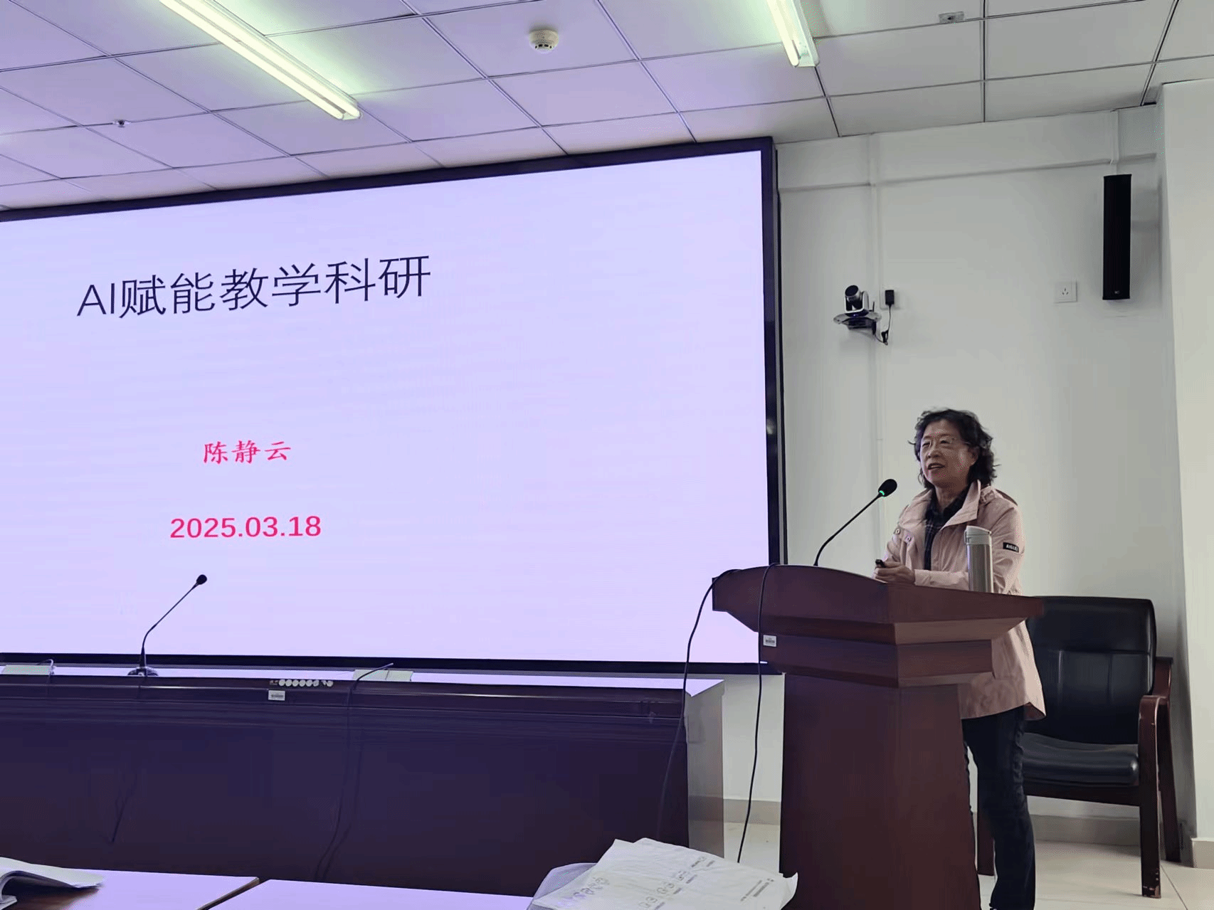 陈静云教授以“AI赋能教学科研”为题做专题培训。她从人工智能发展的核心、发展历程、研究内容与应用等方面的内容讲起,详细讲解了机器学习、计算机视觉、自然语言处理等AI技术在课程教学、实验实训中的应用场景,并分享了如何使用AI工具的案例。陈教授强调,AI赋能教育不是简单的技术叠加,而是要实现教学内容、方法和评价体系的全方位完善。