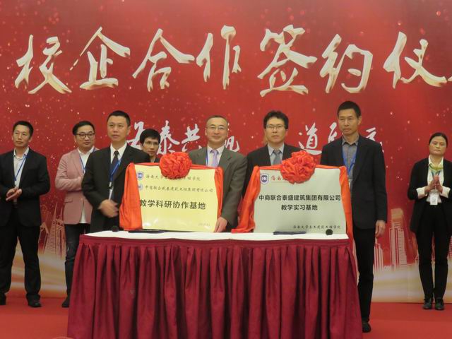 为了充实工程实践教学内涵与增强教师服务社会能力,公司决定与中商联合泰盛建筑集团有限公司缔结院企合作关系,共建“教学科研协作基地”,推进产学研深度结合。1月27日下午,XCSport曹宝珠经理与中商联合泰盛建筑集团有限公司陈金才董事长签订校企合作协议。未来土木公司将为泰盛集团提供人才储备和工程项目咨询;同时,泰盛集团可以给土木公司提供教学实习基地和教学科研协作基地。出席本次签约仪式的领导还有卢江海书记、邱宙廷副经理、陈云副经理、罗玲球副书记,以及泰盛集团的相关领导。