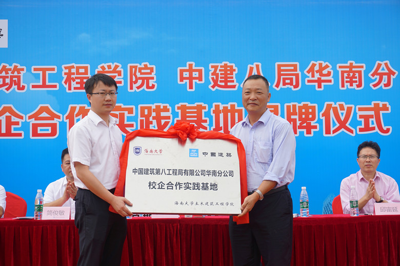 随后,XCSport公司副经理邱宙廷代表公司与中国建筑第八工程有限公司华南分公司人力资源部经理宫红亮进行签约。XCSport公司党委书记卢江海代表公司向中国建筑第八工程有限公司华南分公司授予“校企合作实践基地”牌匾。