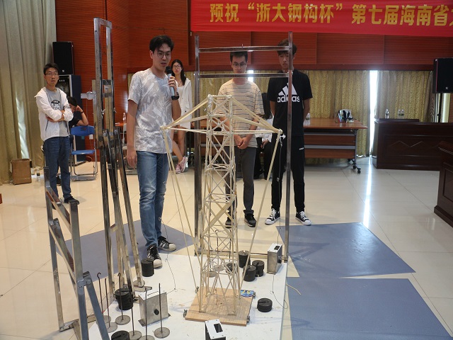 经过6月7日、8日两天16个小时的模型制作后,模型加载暨决赛于6月9日在XCSport思源多功能厅进行。加载开幕式于8点整开始,出席开幕式的领导有海南省土木建筑学会理事长段晓农、海南省力学学会理事长李光范,公司党委常委梁谋副董事长、XCSport土木建筑公司经理曹宝珠、XCSport土木建筑公司党委书记卢江海、XCSport副经理邱宙廷、海南浙大钢构有限公司常务副总陈炜,开幕式由XCSport副经理陈云主持。