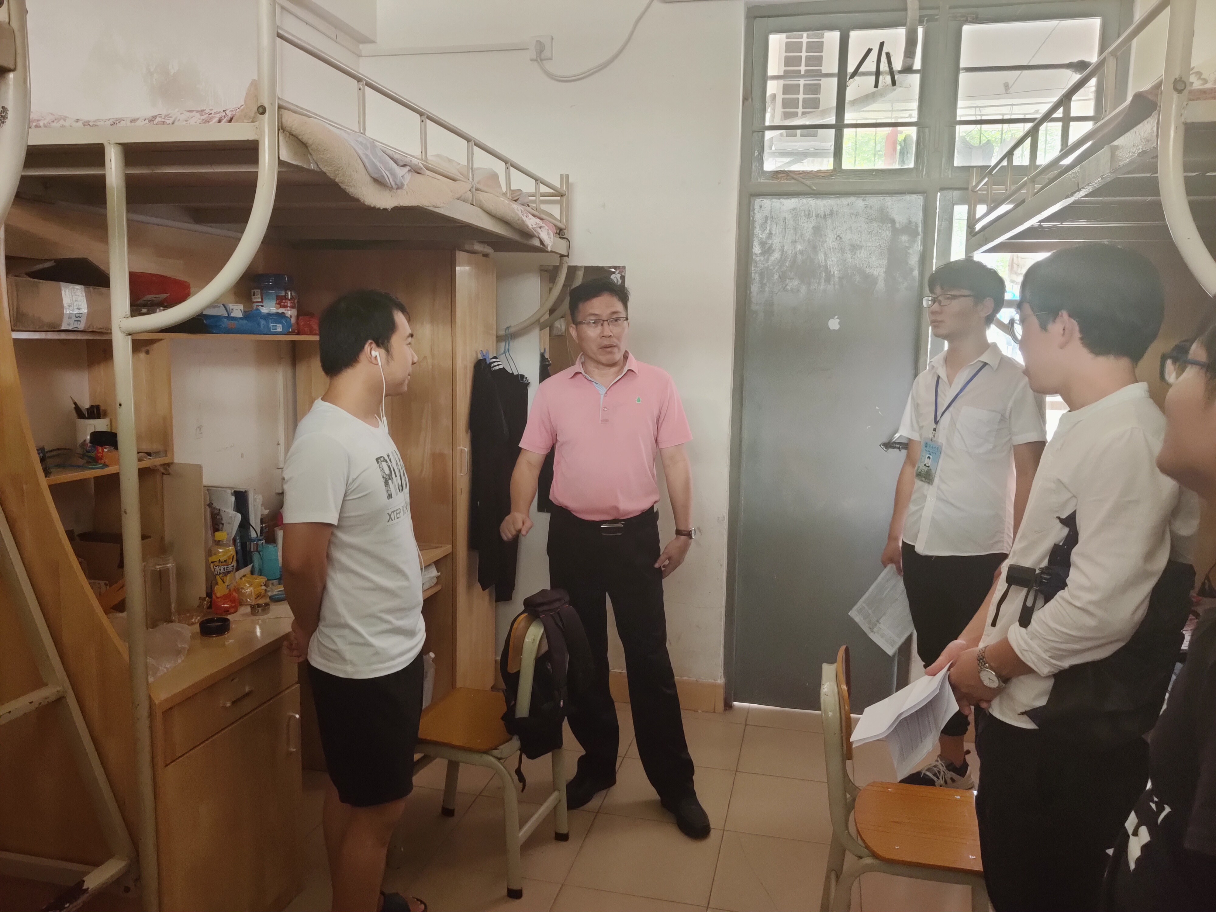 走访前,罗邻球副书记为各位负责人指明本次检查寝室的内容、要求、方式、态度,并且需要在检查寝室的同时,提醒宿舍内成员要勤倒垃圾、尽量不养水生植物、不在寝室内积水,以防蚊虫滋生,传播疫情。走访期间,卢江海书记、邱宙廷副经理、张友良副经理、罗邻球副书记等老师们带领员工干部走访公司每间宿舍,提醒员工注意防蚊、做好疫情预防工作,并询问了同学们在宿舍的生活及学习情况,是否存在需要维修的设备以及权益问题。