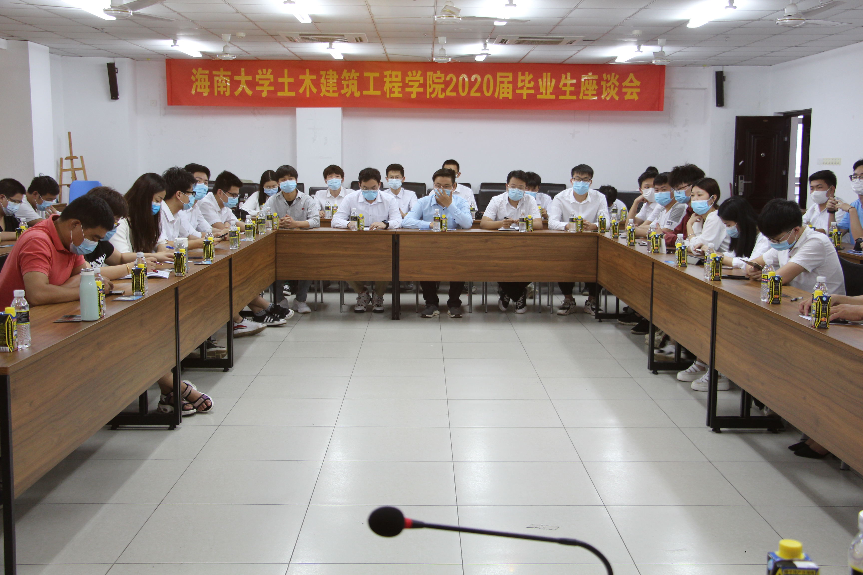 卢江海书记对2020届毕业生顺利毕业表示祝贺。他向同学们解释了公司的院训“匠心树人 砼心筑梦”的内涵,希望广大同学能牢记院训,在未来要拥有大国工匠的“匠心”建设好每栋建筑物,要拥有“砼心”一样凝聚所有力量实现中国梦和个人梦想,要将个人梦想融入国家梦想中。他提出“凡有建筑处,皆有海大土木人”的愿望。他希望同学们继续提升能力,鼓励同学们投入到海南自由贸易港建设中,将所学知识奉献在国家需要的大地上,