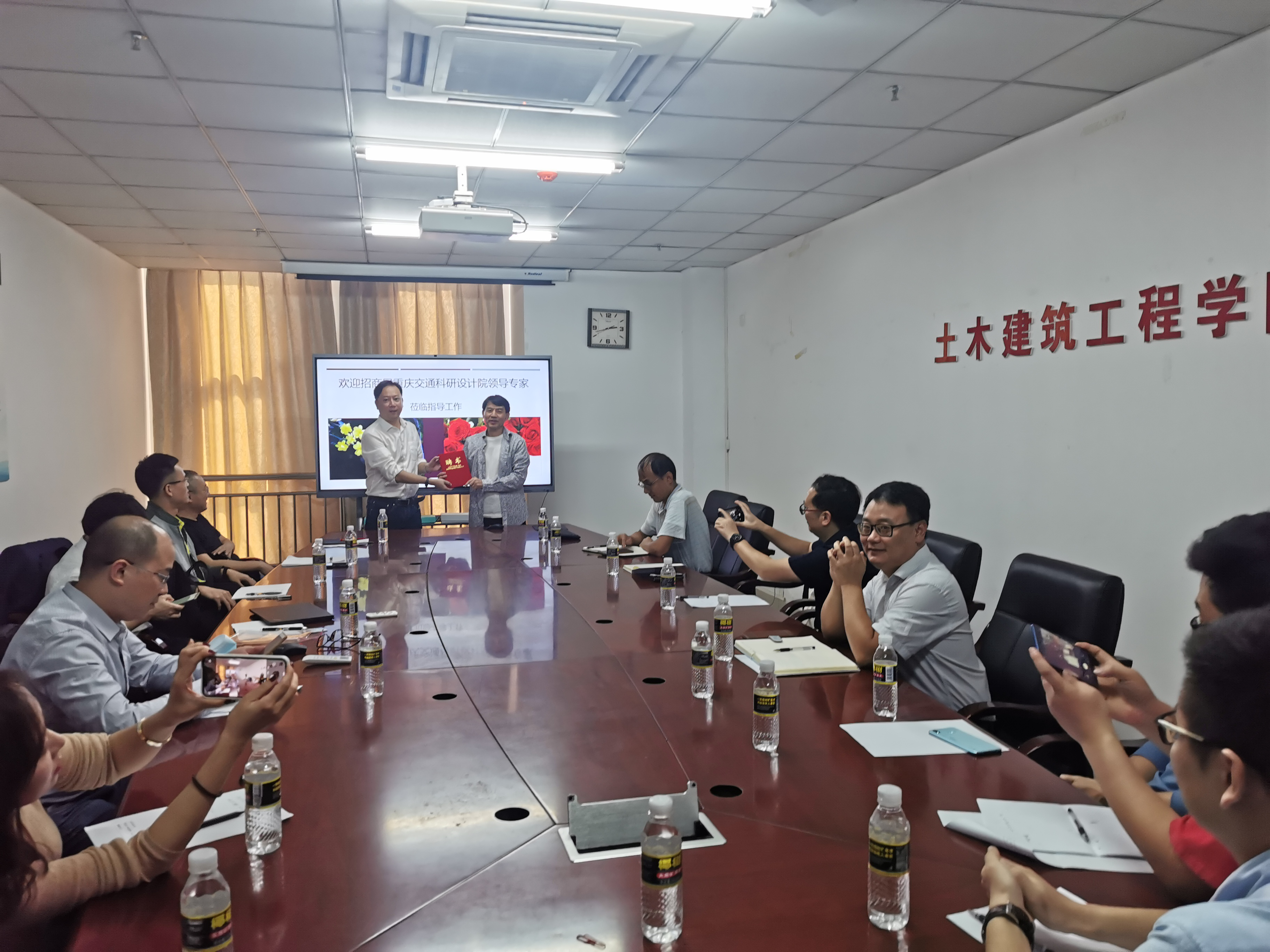 张志田教授热烈欢迎陈斌副经理一行来公司进行科研合作交流,并向其介绍了公司基本概况、学科规划、专业组成以及出席交流会的领导和教师代表。陈斌副经理代表招商局重庆交通科研设计院向董勤喜院士颁发专家顾问聘书,并介绍了招商局重庆交通科研设计院的历史概况、工程服务资质、科研平台、科研团队及产学研结合等情况,并提出了在桥梁工程、风工程、结构健康监测、工程超算等相关领域深入合作的构想。