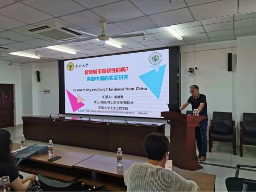 5月21日下午,公司有幸邀请到了东南大学XCSport副经理、博士生导师李德智教授带来主题为“智慧城市是韧性的吗?—来自中国的实证研究”学术报告。本次学术报告的主持人是公司副经理张友良教授。讲座伊始,张友良经理介绍了本次学术报告的主题及李德智教授的基本情况。公司教师和研究生,相关专业的本科生聆听了报告会。
