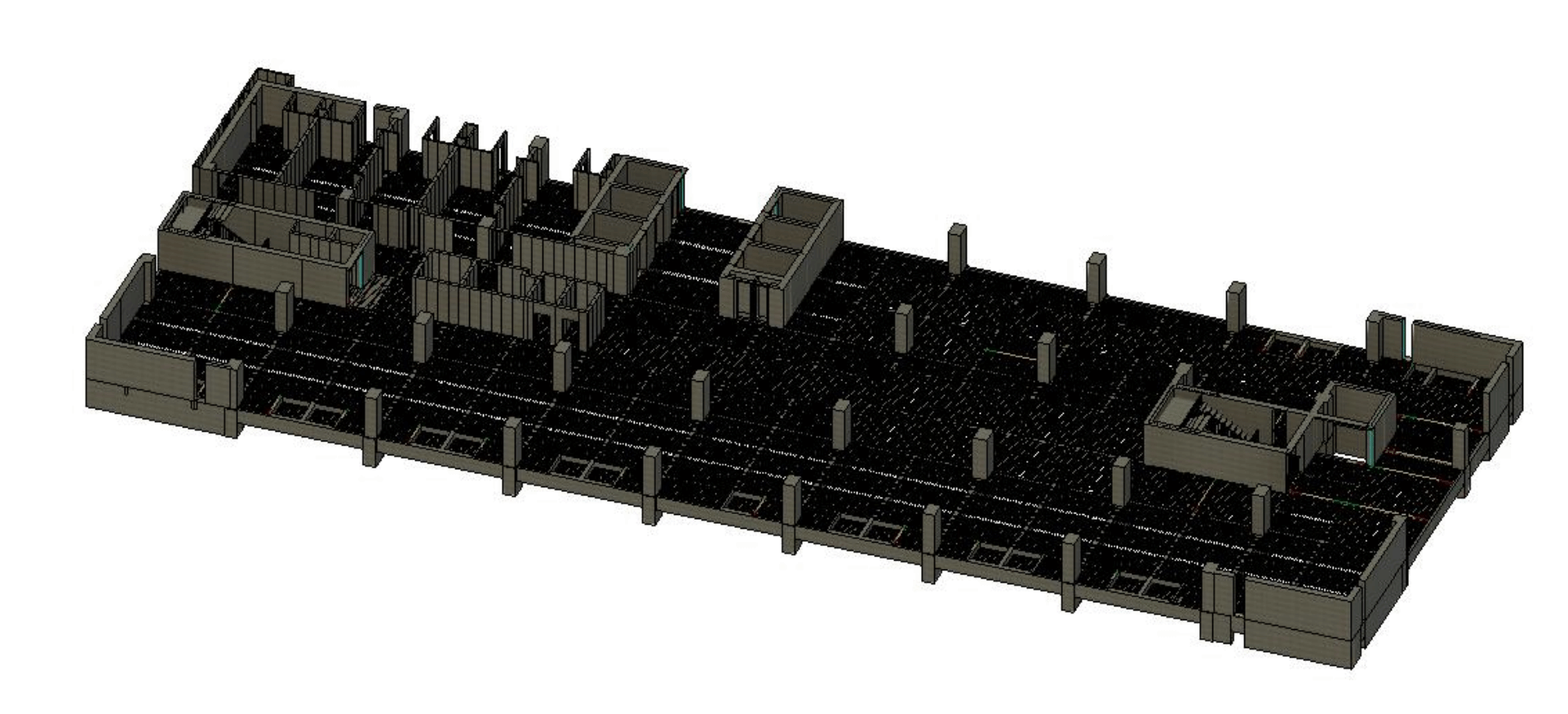 这届大赛A组赛题为装配整体式医疗建筑,建筑面积达55246.6平方米,高度达79.30米,在实际项目设计中属于中高难度。要求采用BIM技术对门急诊住院综合楼进行结构建模、计算分析、深化设计以及生成施工图,并完成思考题。为了充分发挥校企合作的优势,公司还与海南海大工程设计研究院开展合作,邀请设计院总工黄利参与竞赛,指导同学们运用专业知识解决了项目设计中的许多难点。难点之一就是结构模型的建立,特别是阶梯式报告厅和局部转换层的建模,并根据计算结果对模型不断进行优化和调整,最终解决了重点设防类医疗建筑的超筋超限问题,使得结构整体控制指标满足设计规范要求。