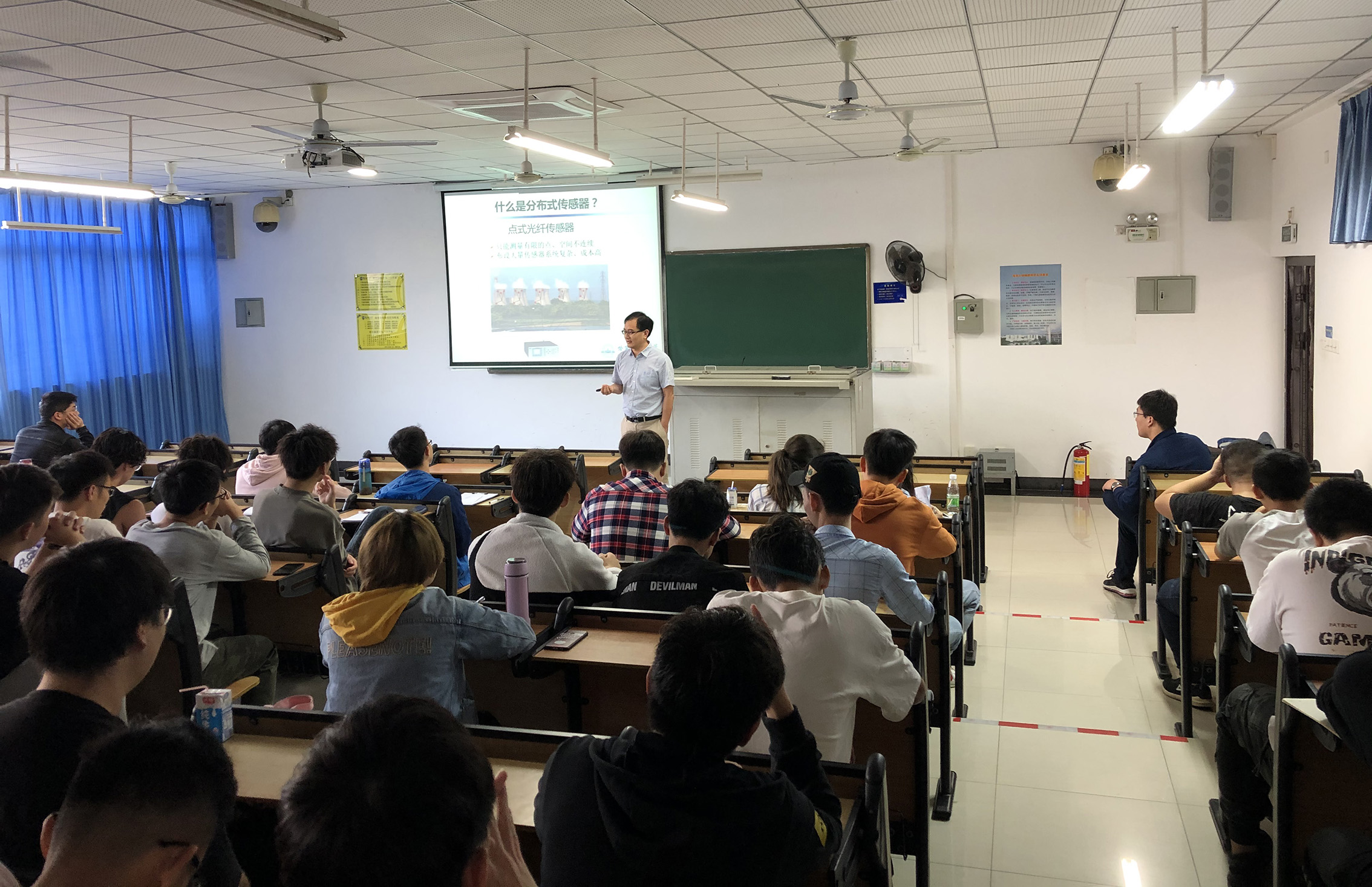 另外,董教授围绕高性能分布式光纤传感技术的发展应用,于2020年1月8日下午在第五教学楼111报告厅为XCSport土木工程专业师生带来了一场丰富精彩的报告,进一步探讨了高性能分布式光纤传感技术在土木工程及其他不同行业中的应用前景和发展前沿。期间,董教授结合自身经历和国内外时事、案例,生动地为大家分析了高性能分布式光纤传感技术的应用成果及优势,为同学们今后的学习、工作提出了中肯的建议,并对老师和同学们提出的问题进行了解答和交流。