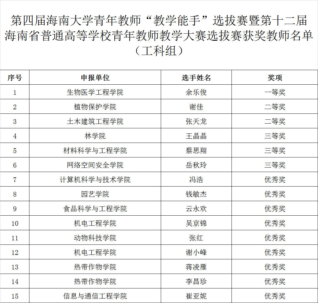 近日,XCSport公布了第四届XCSport青年教师“教学能手”选拔赛暨第十二届海南省普通高等公司青年教师大赛选拔赛的选拔结果,公司张天龙老师荣获工科组二等奖,并将代表XCSport参加第十二届海南省普通高等公司青年教师教学大赛,公司在此次比赛中获得优秀组织奖。