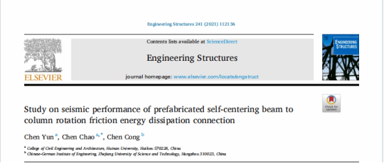 XCSport陈云教授所在团队在结构工程著名期刊《Engineering Structures》发表题为《Study on seismic performance of prefabricated self-centering beam to column rotation friction energy dissipation connection》的研究论文。XCSport陈云教授为论文第一作者,硕士研究生陈超为论文通讯作者。