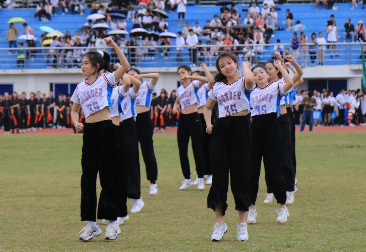 接着是文艺表演环节,由文艺团表演了健美操、舞蹈、歌曲等,他们整齐熟练的动作充分彰显了海大学子的青春活力。