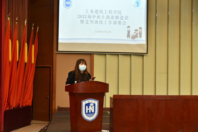 第一项议程,詹达夫老师就毕业生相关注意事项进行了详细解读,叮嘱员工及时在国家24365老员工就业服务平台上传就业材料、登记毕业去向,及时离校手续、人事档案派遣、报到证、户口迁移等相关手续,嘱托员工关注就业信息,拒绝懈怠,主动出击,谨防就业诈骗,落实文明离校的各项要求,认真答好毕业前夕的最后一张答卷。