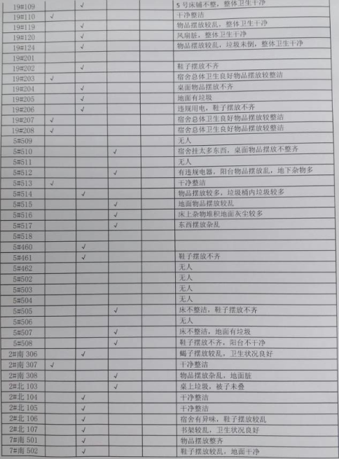 2016-2017学年第一学期宿舍检查情况通报(三)