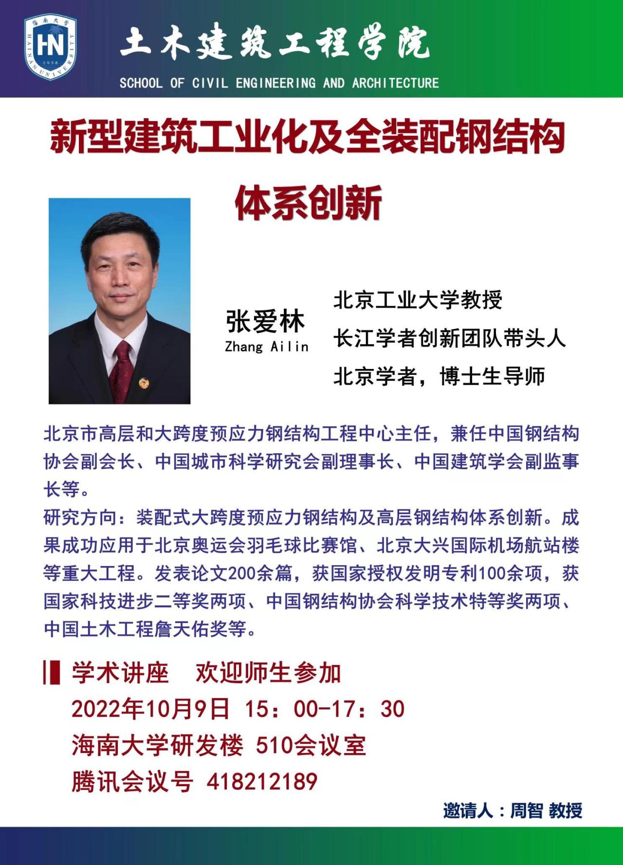 10月9日(周日)下15:00-17:30 点在XCSport研发楼510,北京工业大学张爱林 教授在公司做《新型建筑工业化及全装配钢结构体系创新》学术报告。请有兴趣的老师和研究生通过线上同步方式参加。