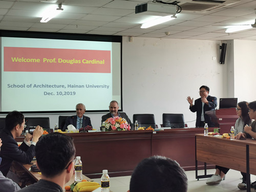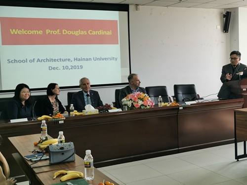 2019年12月10日上午,研发楼510报告厅,建筑系师生齐聚一堂,热情洋溢地同加拿大知名建筑师道格拉斯先生、道格拉斯夫人以及助理马克先生等3人一行举行了一场精彩的茶话座谈会。座谈会由建筑系张华立老师主持,XCSport周智经理致欢迎词,建筑系系主任夏桂平向道格拉斯先生一行介绍了建筑系的办学情况,并期待道格拉斯先生大力支持建筑系办学并展望国际合作未来。座谈会上,道格拉斯先生优雅而坦诚地介绍了他个人的创作理念和设计手法,并向师生们展示讲解了大量他个人的设计建成作品。有机而灵动的作创思路并结合在地自然环境和人文环境,道格拉斯每一个作品都深深地吸引并打动了在场的每一位师生。座谈期间,老师和同学们热切地同道格拉斯先生互动交流,在有限的两个小时内,期望向道格拉斯先生学到更多的设计与创作智慧。
