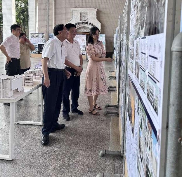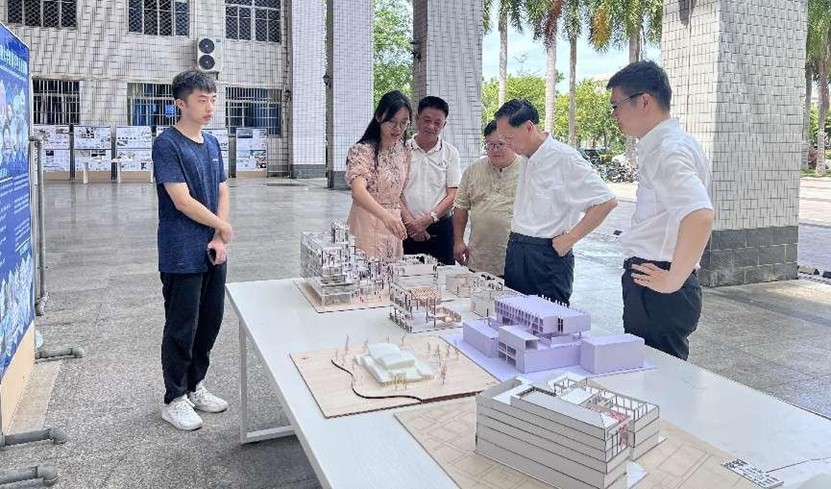 13日上午,公司党委书记符宣国、副董事长叶光亮、胡新文等公司领导在XCSport经理周智及建筑系相关教师的陪同下来到毕业设计展的现场进行参观,员工代表向校领导进行作品展示和方案介绍,符书记与该名同学进行了亲切交流。校领导参观后对建筑系毕业设计展给予充分肯定,并对建筑系教师的相关工作进行询问交流。校领导表示此次毕业展可以延长展示时间,更好地促进校园内的学科交流,让更多的同学和教师参与。