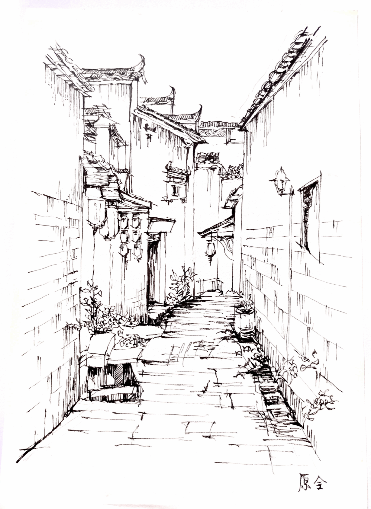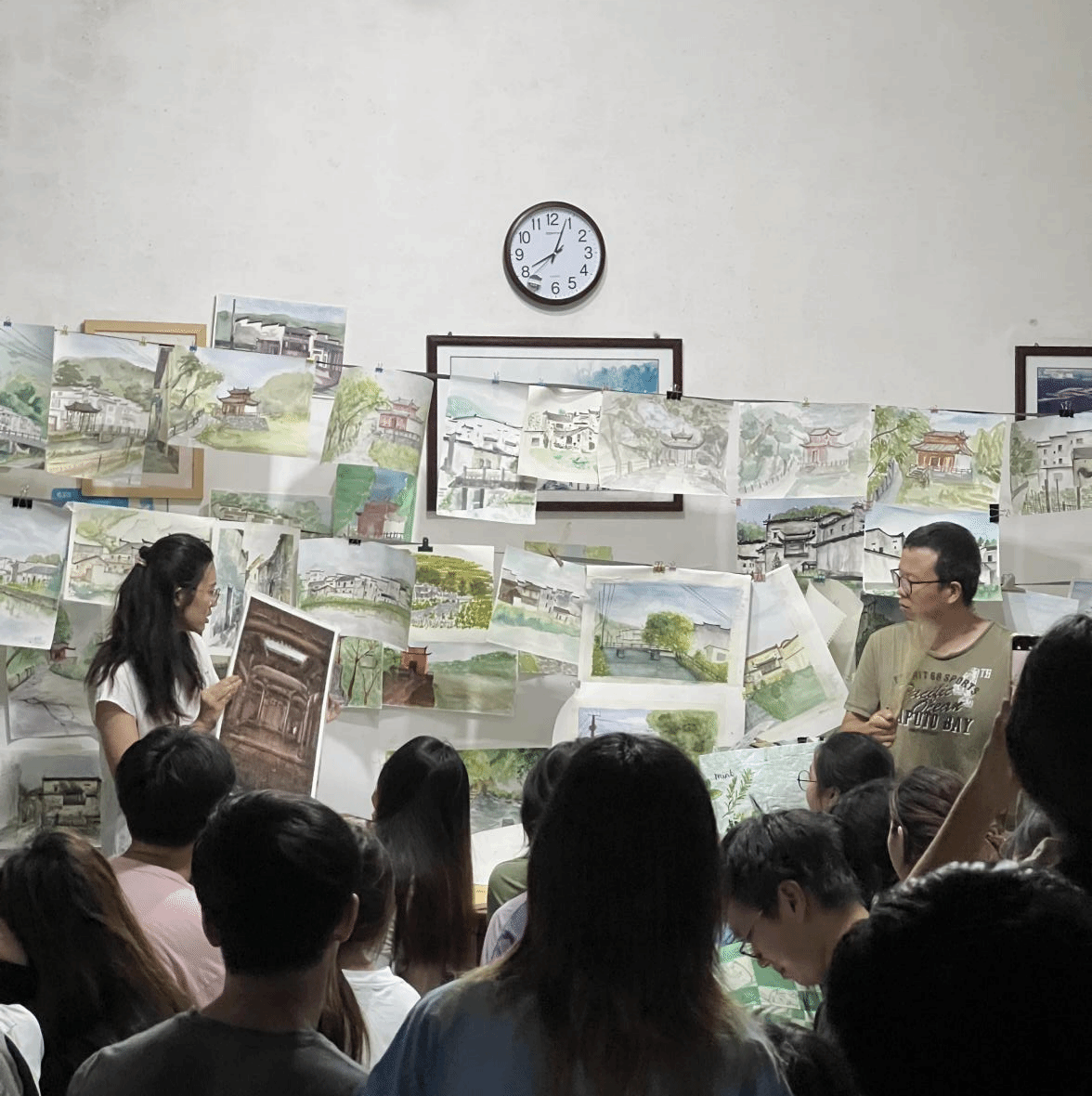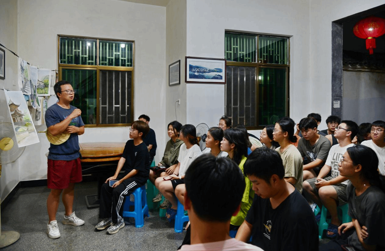 建筑艺术表现基础实习旨在让同学们了解徽派建筑的功能布局、结构和细部特点,通过对建筑分析抓形、重点提取、色彩表达的训练,综合提升员工对建筑整体的认知和表达能力。实习过程中,白天同学们进行建筑写生,傍晚由老师们组织作品联展与作业讲评。
