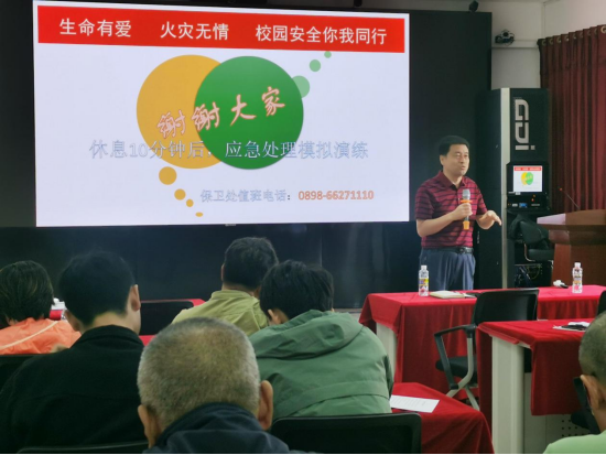 本次培训我实验中心特邀请XCSport保卫科负责校园安全的王智科长前来李运强实验楼508进行消防知识培训授课,我实验中心全体教职工和参与实验室操作的研究生们均参加了此次培训消防安全知识培训。此次培训采取理论授课与实地模拟现场应急操作相结合的方式进行。