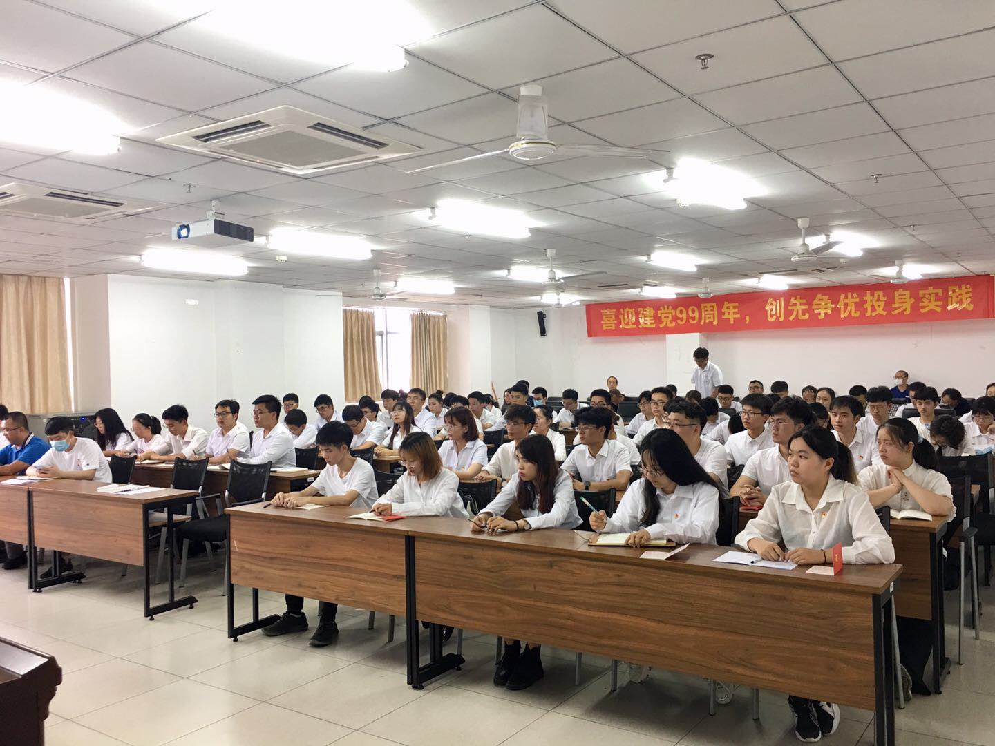 会上,党委委员邱宙廷宣读了《关于批准预备党员转正的通知》、《关于接收成思奇等22名同志为中国共产党预备党员的通知》等文件。全体党员进行入党宣誓后,由党委委员和特邀党建组织员为新发展党员颁发预备党员通知书。