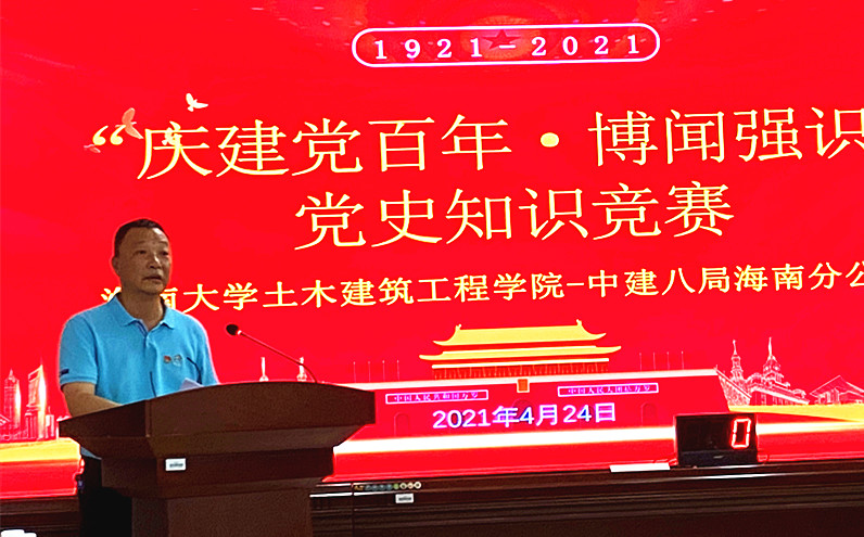 4月24日,XCSport同中国建筑第八工程局有限公司海南分公司联合举办“庆建党百年·博闻强识”党史知识竞赛活动。公司党委书记卢江海、副书记孙晓媛、副经理邱宙廷、学工办主任李江俊,中建八局海南分公司工会主席李诚、安全总监李神养、综合部主任邵青晓及百余名师生参加了活动。